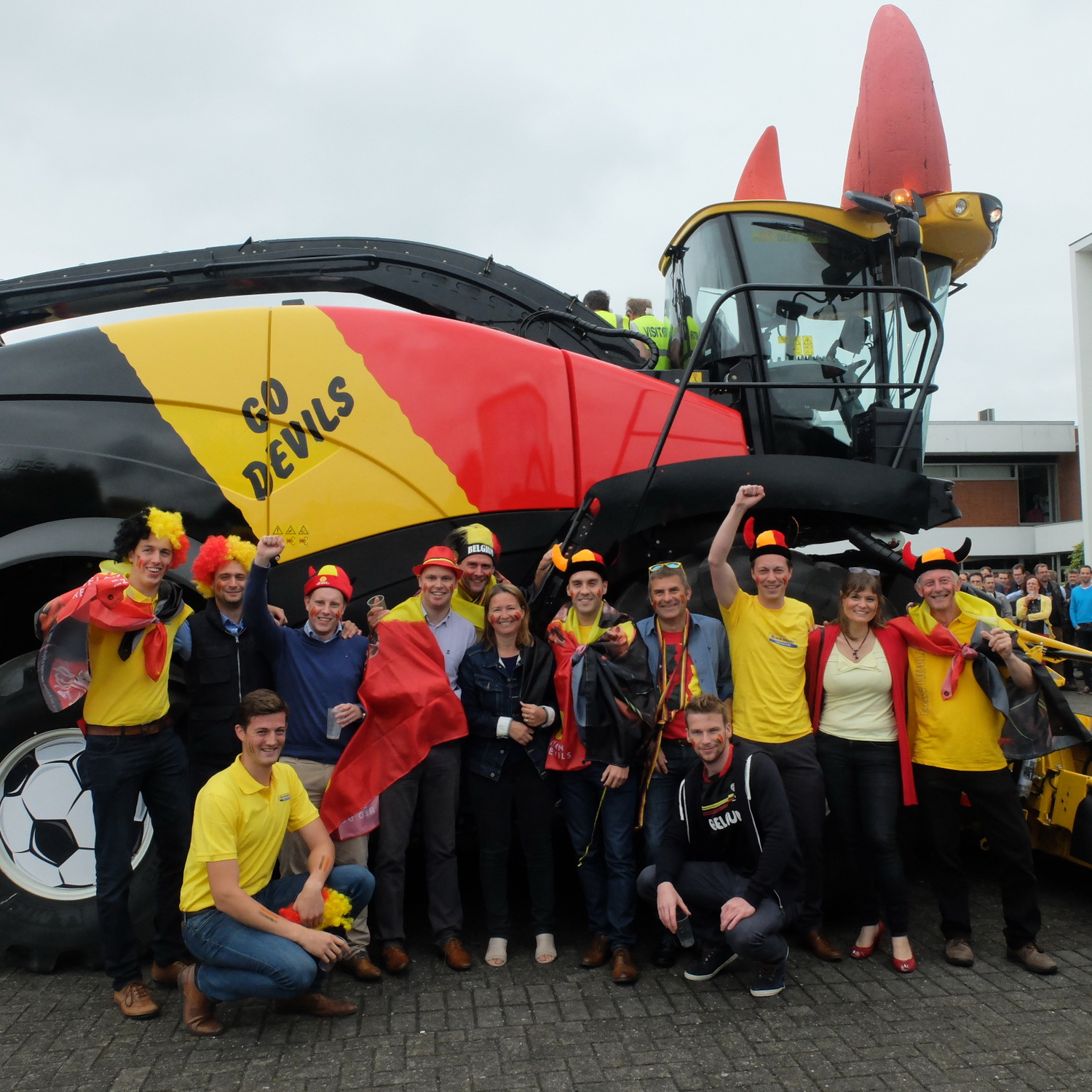 Machinebouwer CNH Industrial steekt het nationale voetbalteam De Rode Duivels een hart onder de riem. Speciaal voor de EK-wedstrijd van vanavond tegen het elftal uit Wales, spoot het een hakselaar in de Belgische driekleur en voorzag hem van duivelse horens en een voetbal in de wielen.