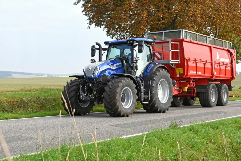 Een donkere kleur blauw, zilveren velgen en een aflopende motorkap. Het zijn een paar uiterlijke kenmerken van de nieuwe New Holland T7.225. Maar er is meer nieuws, zo blijkt tijdens een proefrit. Een vernieuwde traploze transmissie bijvoorbeeld.