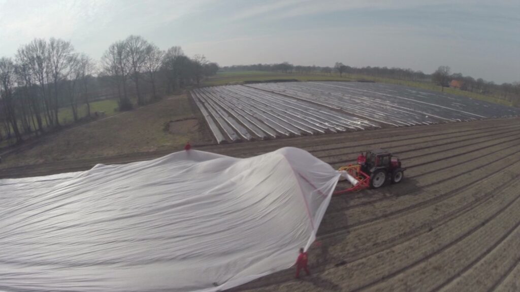 Het uitrollen en spreiden van vliesdoek kost veel tijd. Je moet het immers met de hand over het gewas trekken. Daarom ontwikkelde BSE Ymond uit Beverwijk het Agro Reel System. Een haspel waarmee je het doek breed neerlegt. En dat allemaal gemechaniseerd.