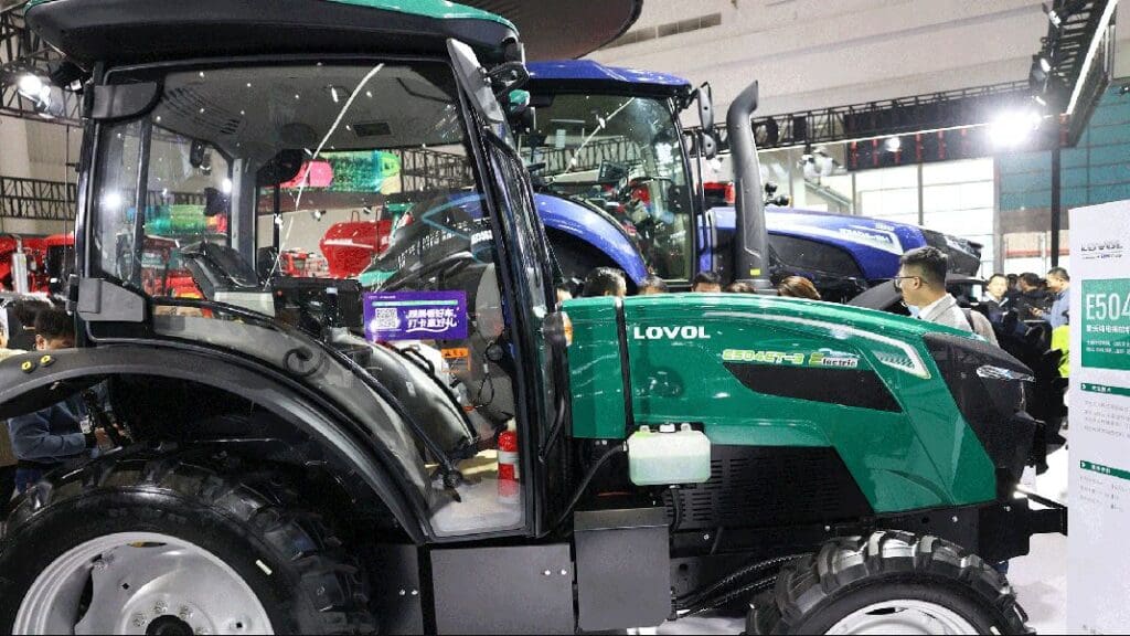 De Chinese trekkerfabrikant Lovol toonde tijdens de CIAME, een beurs in Wuhan, twee elektrische trekkers en een hybride trekker.