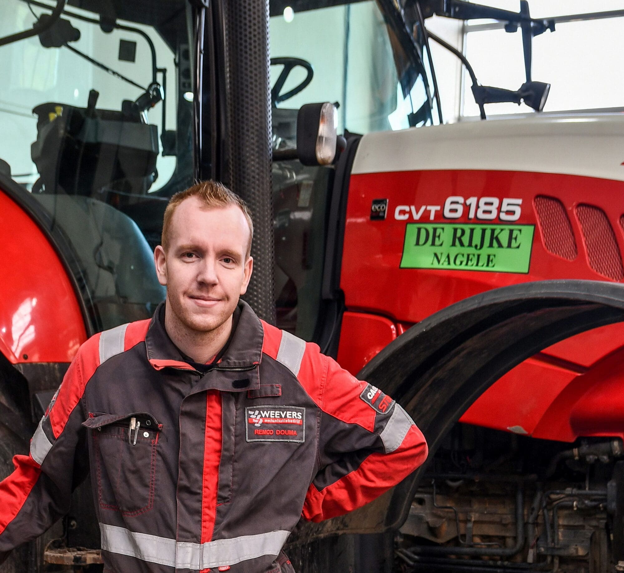 Remco Douma uit Emmeloord (Fl.) stapte precies negen jaar geleden binnen bij Weevers in Swifterbant (Fl.). Hij volgde destijds een monteursopleiding bij Aventus en liep een paar maanden stage bij de Steyr- en Case-dealer. Dat ging goed, want later in 2017 tekende de monteur een contract.