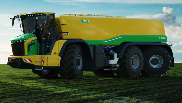 Machinebouwer Oxbo presenteert de AT5106. De zelfrijdende bemester heeft zes wielen en vult daarmee het 3-, 4-, en 5-wielige programma aan.