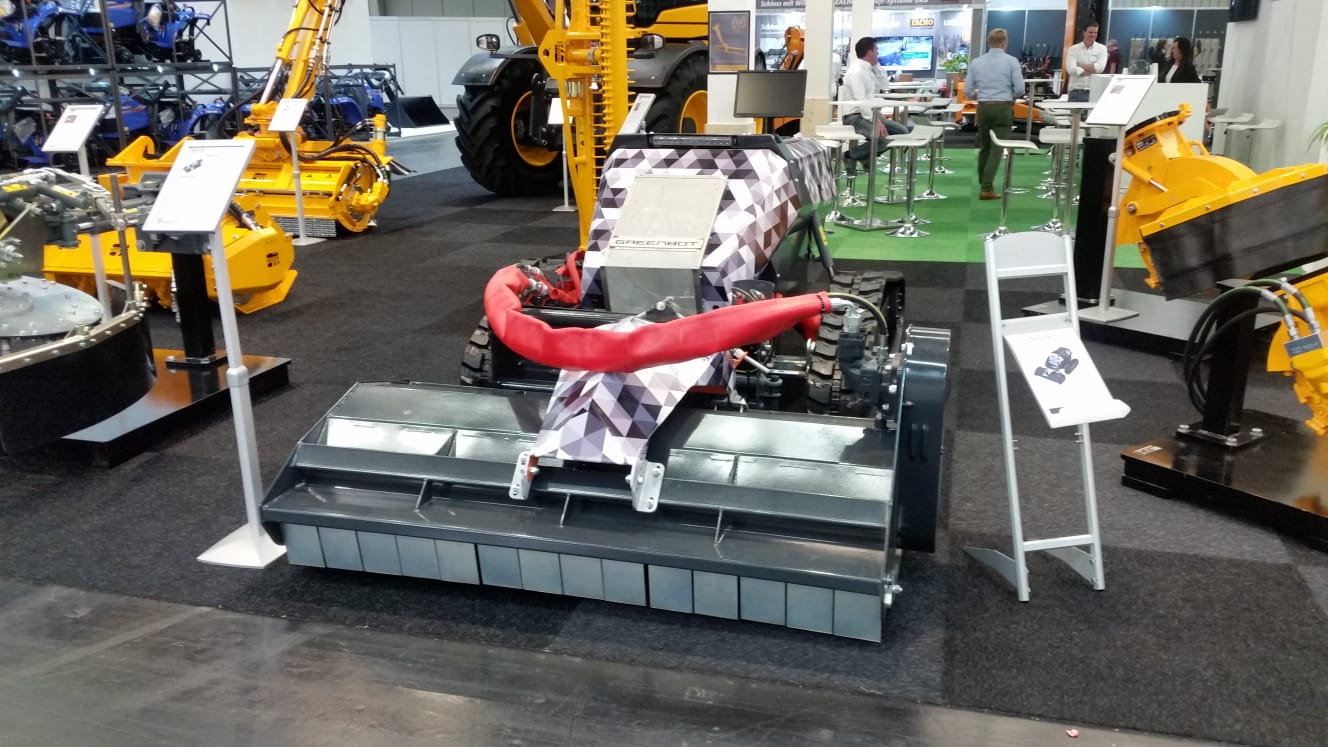 Op de foto is de CR 10 -zoals hij officieel heet – voorzien van een klepelmaaier, waarmee hij radiografisch of autonoom kan werken op hellingen en taluds tot 55 graden.