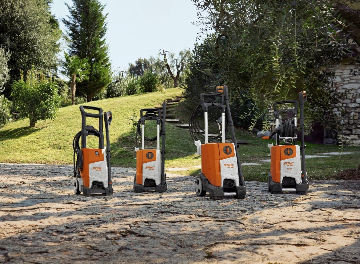 Stihl komt met vijf nieuwe hogedrukreinigers op de markt. De RE 90, RE 100, RE 110, RE 120 en RE 130 PLUS hebben twee soorten sproeiers die verwisseld kunnen worden met een steekkoppeling.