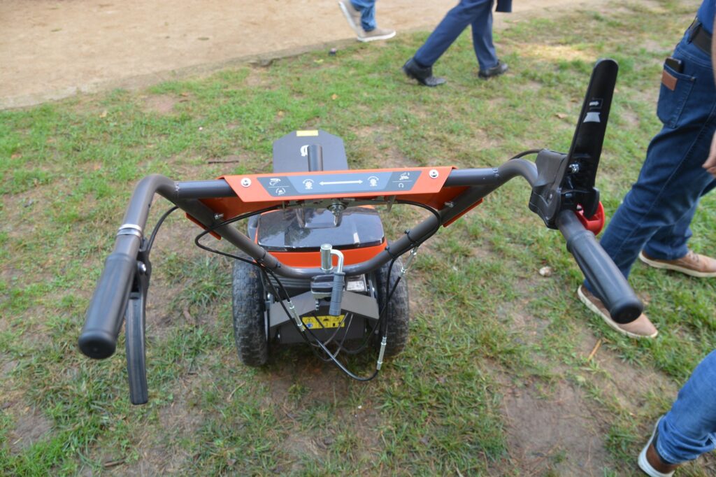 De 67 kg wegende onkruidborstel werkt op één of twee 36-volts blokaccu’s. Plaats je twee accu’s in de machine, dan worden deze één-voor-één gebruikt. De motor drijft enkel de borstel aan – de wielen worden niet aangedreven.