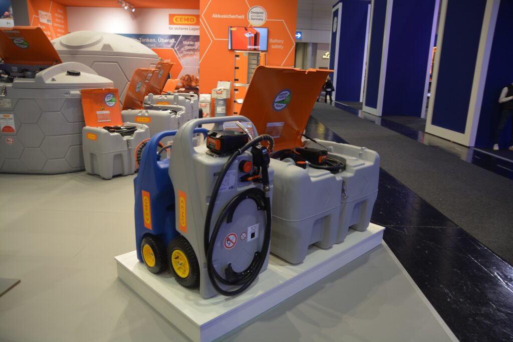 Cemo komt met meerdere mobiele dieseltanks die werken met behulp van een Stihl AP-accu. De accu levert stroom voor de aandrijving van de pomp.