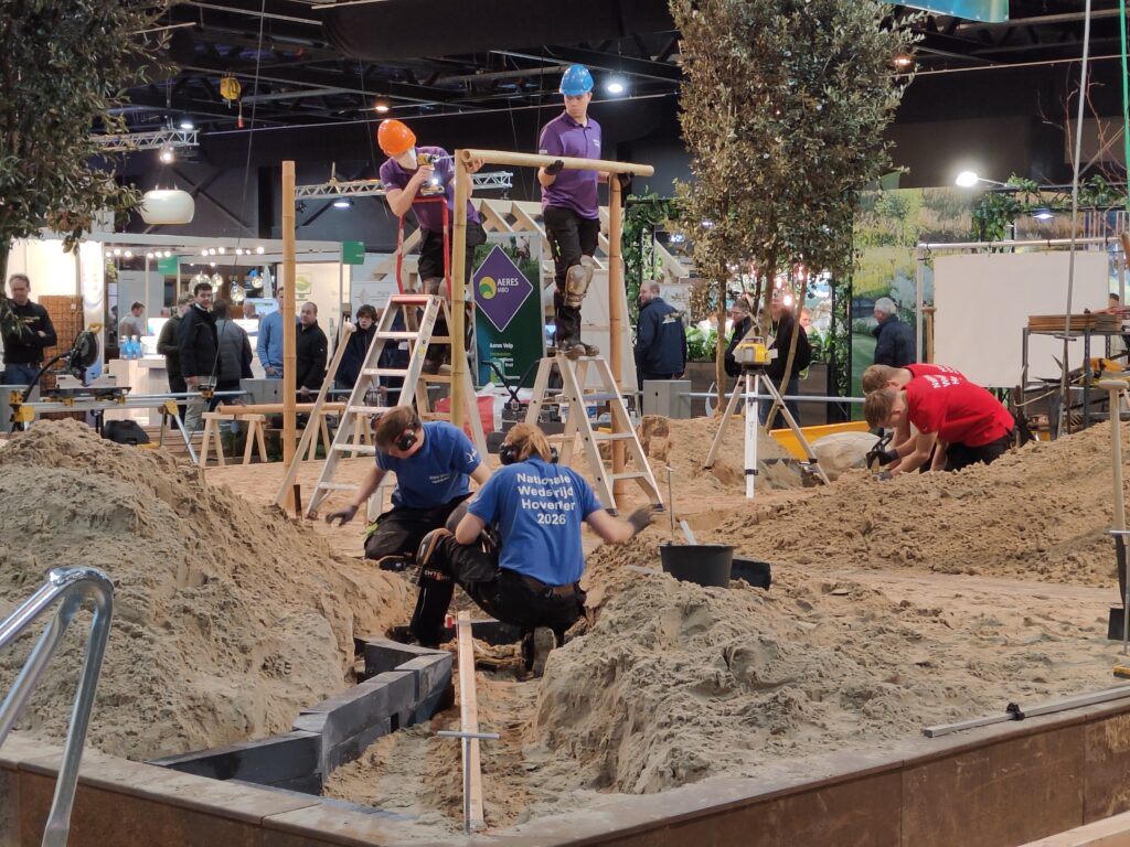 Ook traditie op de beurs: de finale van de Nationale Wedstrijd Hovenier. Vier teams strijden om de titel.