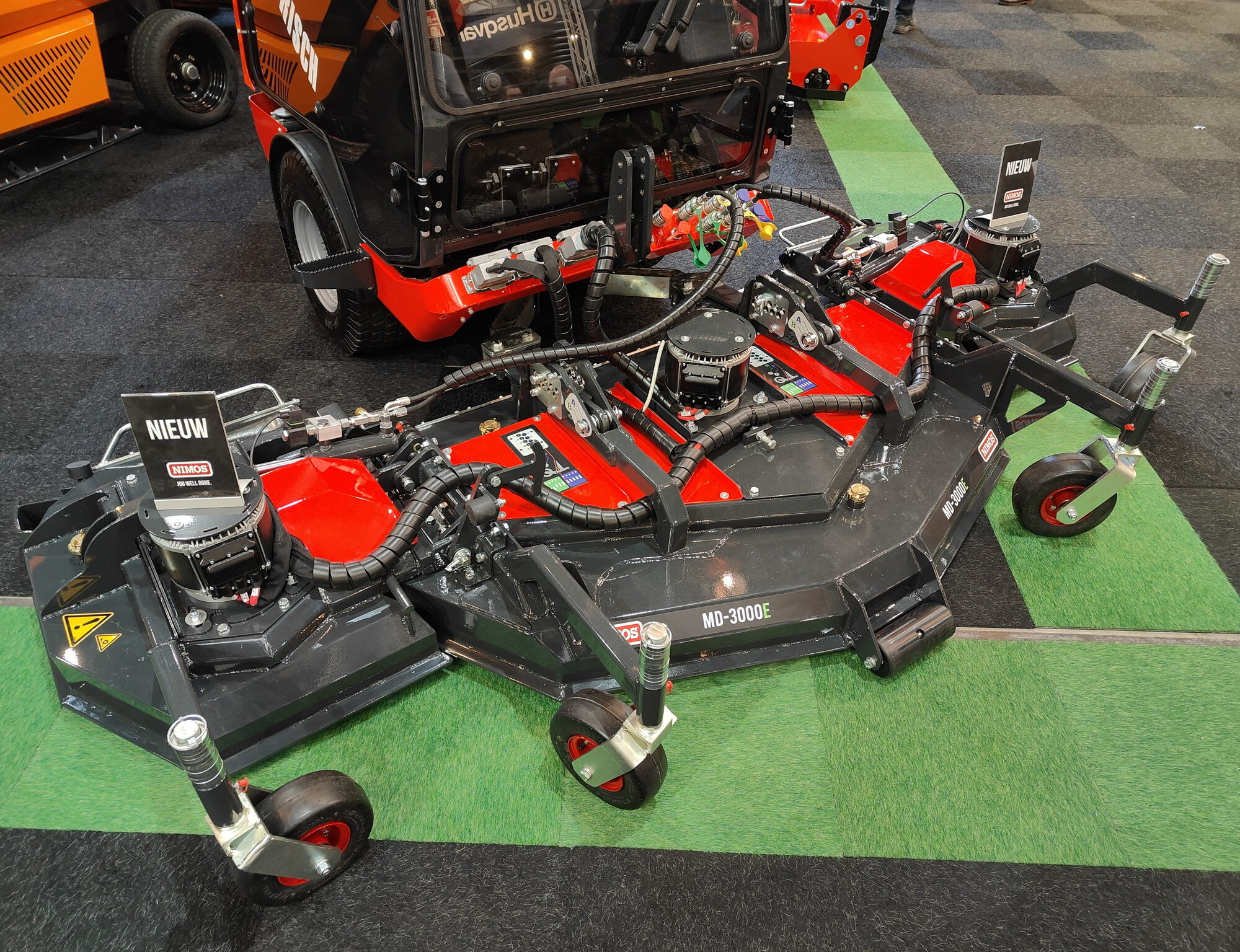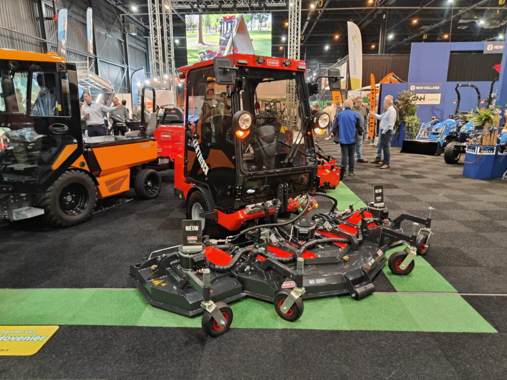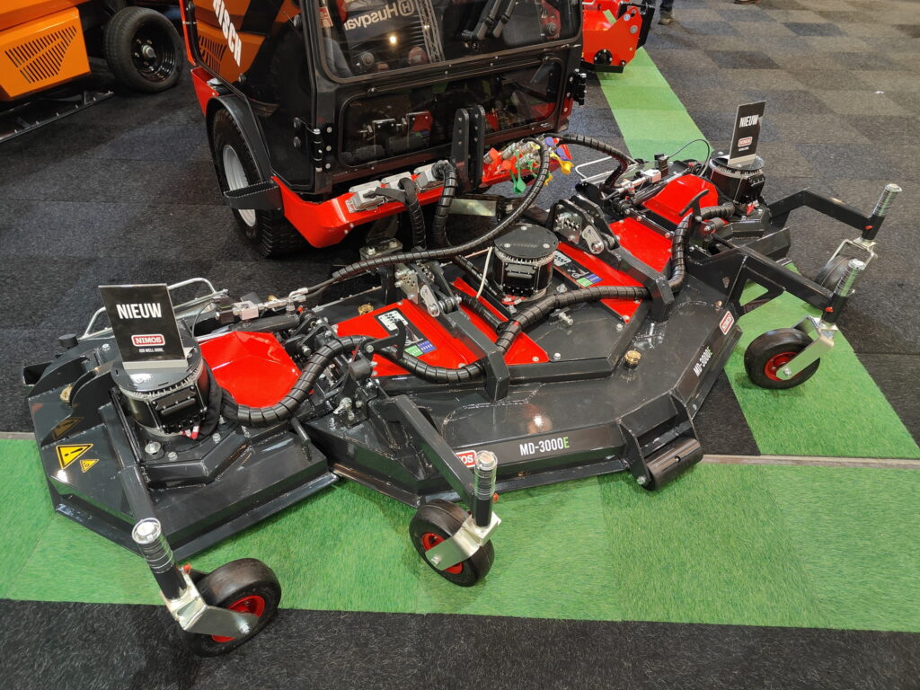 Machinebouwer Nimos presenteert op De Groene Sector Vakbeurs een elektrisch aangedreven maaidek met een breedte van drie meter. Het dek is op de beurs gemonteerd aan een Posi-Trac K-316 werktuigendrager.