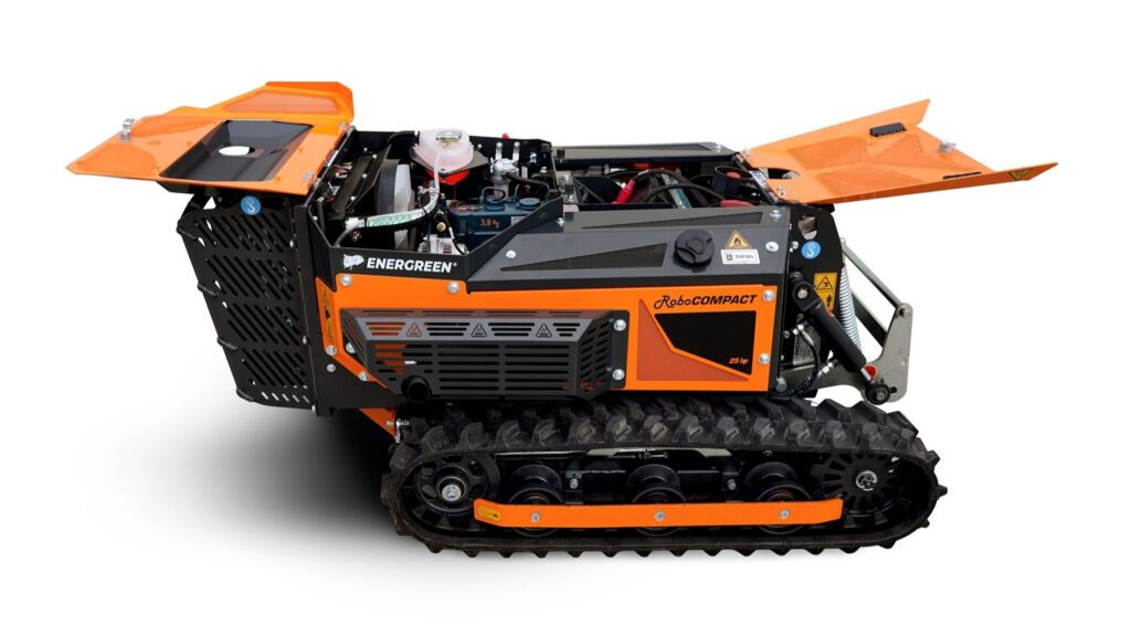 Energreen komt in mei met de Robo Compact als vervanger voor de Robo Mini. Deze op afstand bestuurbare werktuigendrager heeft niet langer een benzinemotor, maar een 18,4 kW (25 pk) sterke dieselmotor.
