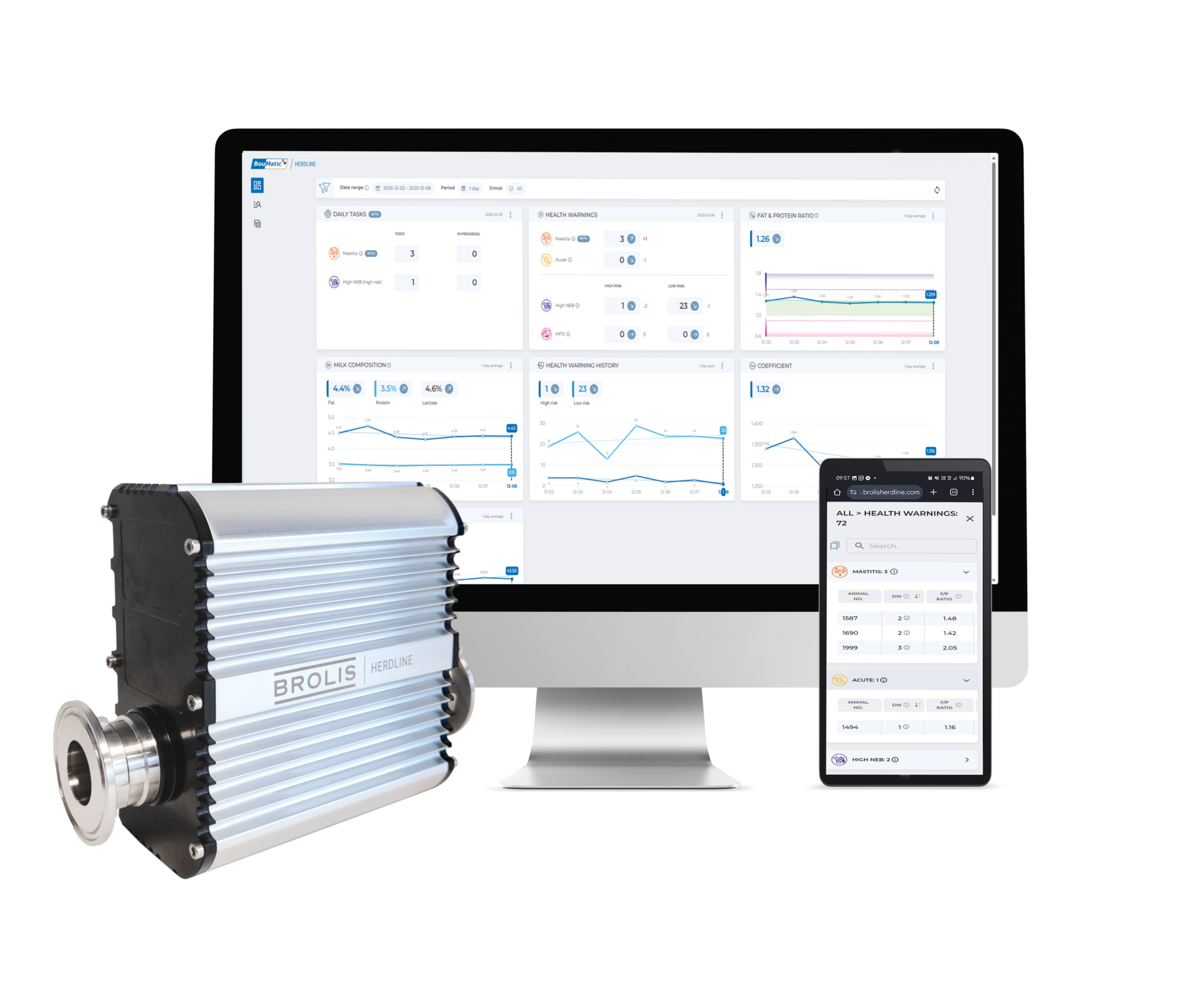 Daarnaast geeft de Boumatic-robot als hij is uitgerust met de Milkline Genius en de Herdline-app nu ook een een mastitisindicatie, inclusief een score die de waarschijnlijkheid van een mastitiswaarschuwing aangeeft. Deze indicatie met score is gebaseerd op meerdere parameters, zoals geleidbaarheid per kwartier, melkproductie, percentages vet, eiwit en lactose, en melktemperatuur. Ook nu hoeft de veehouder deze gegevens niet meer zelf te interpreteren. Herdline stelt namelijk een diagnose en begeleidt veehouders tijdens de controle en de behandeling.